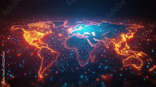 Futuristic Digital World Map of Global Connectivity and Cyber Technology for International Data Transfer