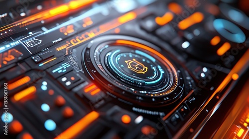 Futuristic DJ Mixer with Glowing Controls and Digital Display for Music Production