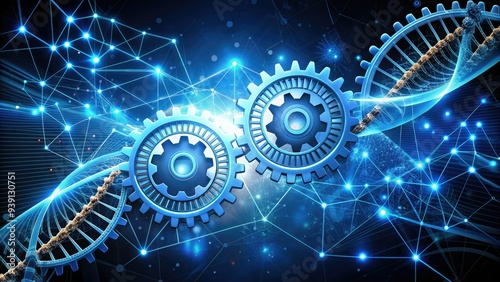 Futuristic DNA helix logo with gears and circuits integrated into its structure, symbolizing the fusion of genetic research and advanced technology.