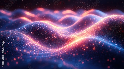Futuristic Dynamic Wave in Space with Glowing Particles and Vortex Structure