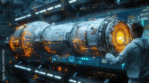 Futuristic Engineer Designing Next-Generation Spacecraft with Holographic Models in CAD Software | Space Exploration Concepts