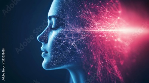 Futuristic female profile with neon cybernetic network design for tech innovations