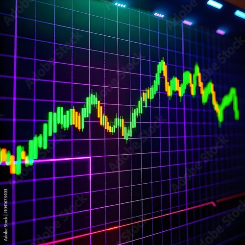 Futuristic financial chart high tech trading visualization with glowing lines and data points