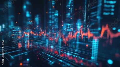 Futuristic Financial Data Visualization in a Digital Cityscape