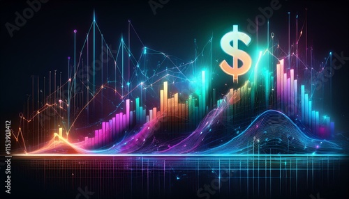 futuristic financial graph with dollar sign and numbers on black background