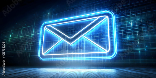 Futuristic Floating Glowing Email Icon for Cyber Monday Sale Notifications - Ideal for E-commerce and Email Marketing Infographics
