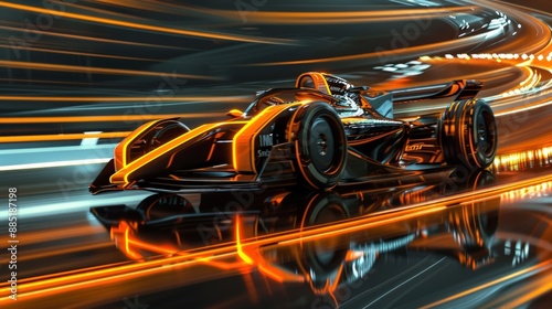 Futuristic Formula One car orange and black color. Generate AI image
