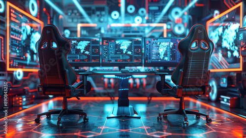 Futuristic Gaming Setup with Two Chairs and Monitors