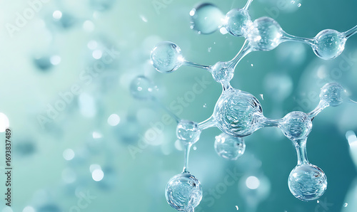 Futuristic Glass and Water Molecular Designs: A Conceptual Exploration of Advanced Skincare and Cosmetic Innovation, Blending Organic Patterns, Bioluminescence, and Minimalist 3D Aesthetics