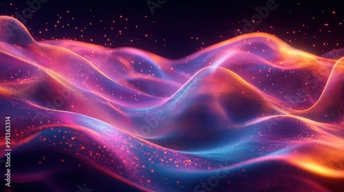Futuristic Glass Structures with Holographic Waves and Shimmering Accents for Banner Design