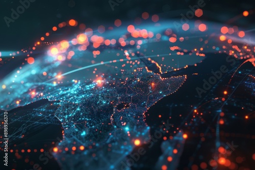 Futuristic Global Network with Luminous Nodes and Connectivity Illustrating Advanced Technology, Communication, and Data Exchange for Innovative Solutions