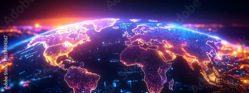 Futuristic Global Trade Visualization with Holographic World Map Display and Cinematic Sci Fi Cityscape