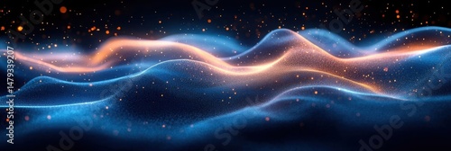 Futuristic Glowing Blue Abstract Shape on Dark Grainy Background