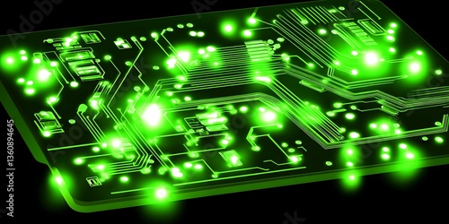 Futuristic Glowing Green Circuit Board Representing Advanced Technologies