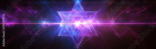 Futuristic Glowing Hexagram Illuminated in Neon Lights