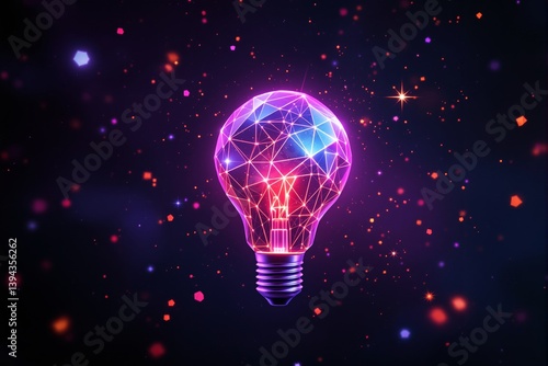 Futuristic glowing polygonal light bulb with abstract digital connections.