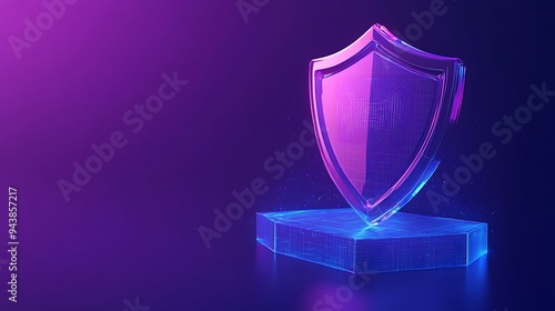 Futuristic glowing shield icon on a neon background symbolizing cybersecurity, digital protection, and advanced technology innovation.