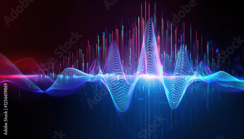Futuristic glowing waveform analyzing voice data in digital environment