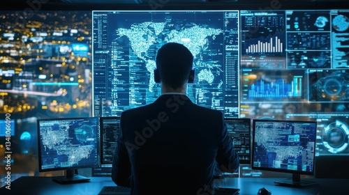Futuristic Government AI Analyzing Data for Global Security Strategies