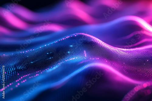 Futuristic gradient design transitioning from blue to purple with a digital grid and glowing details
