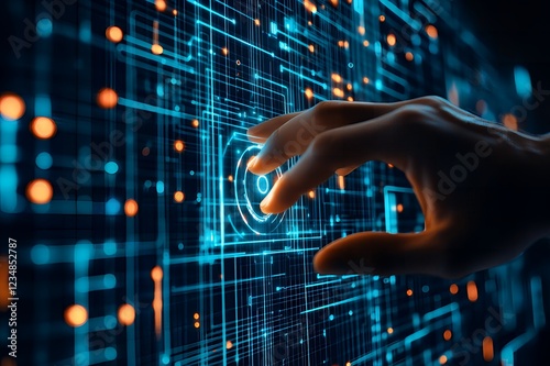 Futuristic Hand Interacting with Digital Circuitry Interface Abstract Technology Background