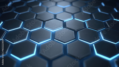 Futuristic hex patterns emerge in digital light cyber design background abstract technology environment macro view