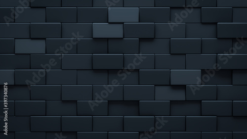 Futuristic, High Tech, dark background, with a offset rectangular block structure. Wall texture with a 3D rectangle tile pattern. 3D render