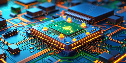 Futuristic High-Tech Circuit Board with Intricate Gold Connections