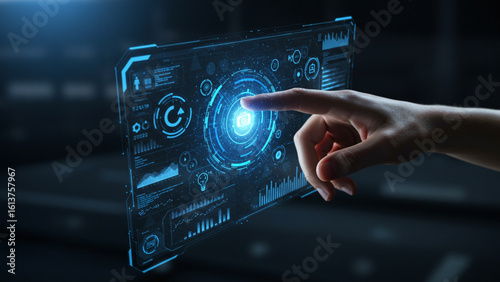 Futuristic holographic data visualization with flowing information streams in virtual space
