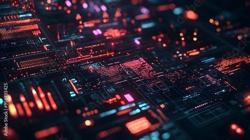 Futuristic Holographic Digital Interface with Glowing Data Grids and Technology Visualization