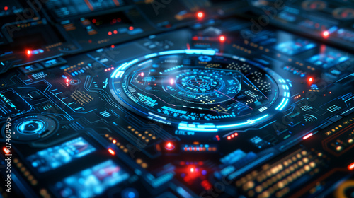 Futuristic holographic interface with neon in advanced technology.