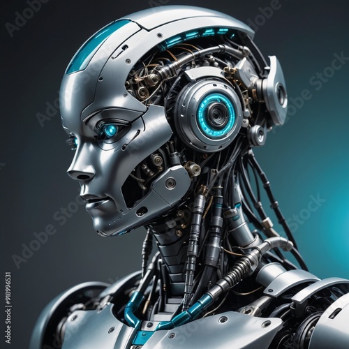 Futuristic Humanoid Robot with Metallic Blue Helmet in Profile View