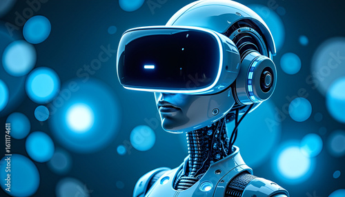 Futuristic Humanoid Robot with Virtual Reality Headset