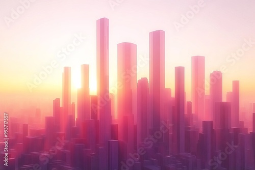 Futuristic illustration of a city skyline with pink hues symbolizing urban innovation technological advancements and the clean modern architecture of tomorrow’s cities