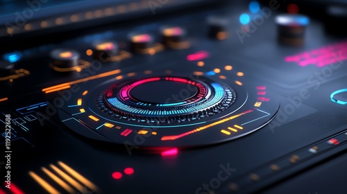 Futuristic industrial controls, glowing elements, cyberpunk design, 3D illustration