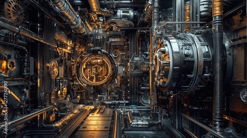 Futuristic Industrial Warehouse with Pipes and Mechanical Elements