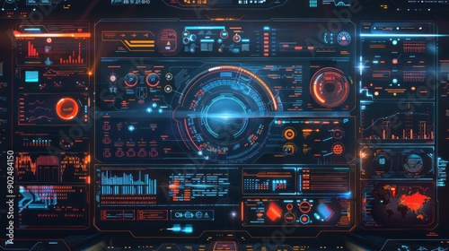 Futuristic Interface with Glowing Blue and Orange Displays