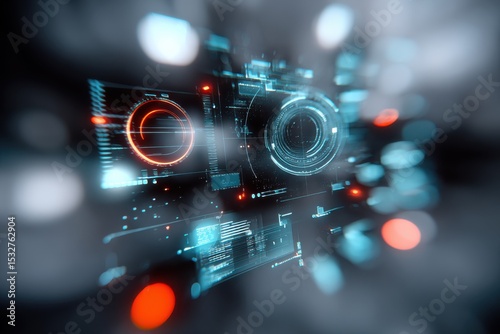 Futuristic Interface With Glowing Circles, Representing Data Analysis and Technological Advancement in Digital Transformation and Innovation : Generative AI