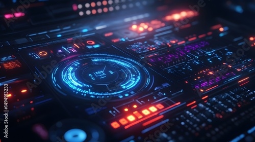 futuristic interface with glowing neon lights, showcasing cutting-edge technology