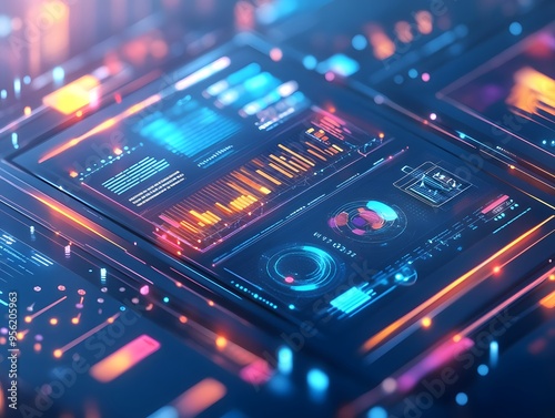 Futuristic Interface with Neon Lights and Data Visualization.
