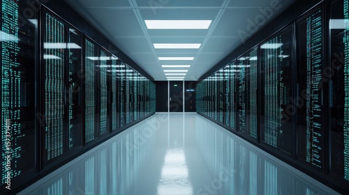 Futuristic lab with suspended digital data flows in transparent tubes, sleek minimal design, high-tech yet simple environment