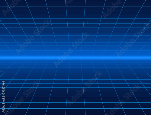 Futuristic Landscape With Styled Laser Grid. Neon Retrowave. Vector illustration.