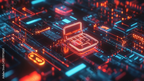 Futuristic Laptop Design on Circuit Board - Abstract Technology Art