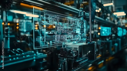 Futuristic manufacturing assembly line showcasing advanced technology and automation in action
