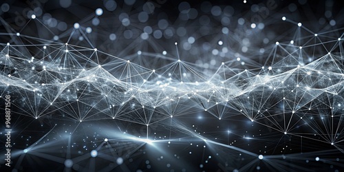 Futuristic motion background of reticulum particles in black gray, technology theme