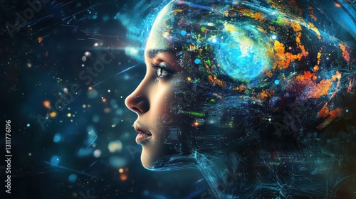 Futuristic multicultural theme, integrating global motifs with high-tech visuals and innovative elements