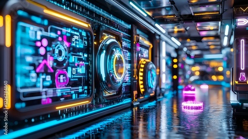 futuristic neon corridor, sci-fi tech - cyberpunk aesthetics