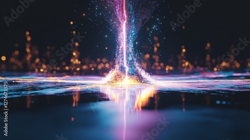 Futuristic Neon Lightning Bolt, Digital Energy Icon, Glowing Electric Power, Cyber Tech Spark, AI Symbol