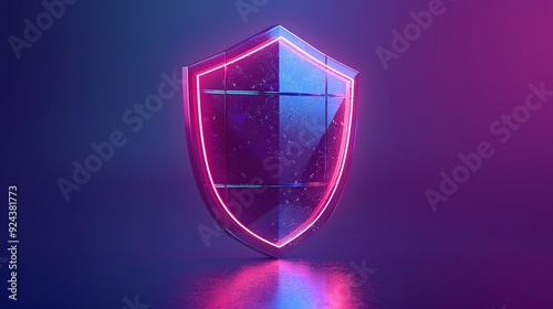 Futuristic neon lit shield symbolizing cybersecurity and digital protection against virtual threats, with a modern, tech aesthetic.