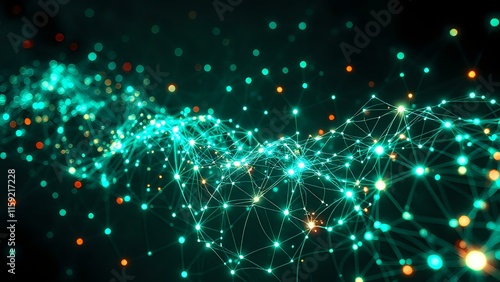 Futuristic Neon Node Network Art, Bioluminescent Glow - Stock Photo